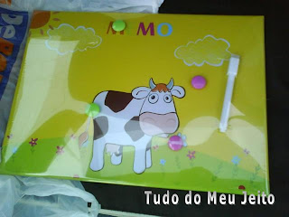 Já há muito tempo que gostava de por um memo na minha cozinha com a ideia de afixar lá uma ementa, deixar recados e notas para não me esquecer de algo, etc, etc.. Sei que muita gente usa a porta do frigorifico para isso mas além de não gostar de ver os meus electrodomésticos são todos encastrados não dão. Andei a pesquisar e até encontrei mais que um no Ikea mas são muito grandes e caros para a função que pretendo e ainda tinha de comprar os imans e a caneta.Por isso, adiei a compra à espera que um dia me aparece-se algum e não é que apareceu. :O) No Domingo passado fui ao DeBorla e encontrei este da imagem. Havia com vários desenhos mas escolhi o da vaquinha porque adquava-se melhor numa cozinha e era o que parecia menos infantil e como a minha cozinha está em verde veio mesmo a calhar, e depois porque pelo preço nem que eu o pintasse a spray numa só cor valia a pena, custou-me 0,99€ é mais ao menos do tamanho A4, tem 4 imens e uma caneta. E sabem que mais o tamanho está óptimo e o desenho fica lindamente na cozinha, agora só falta por no sitio mas como daqui a mais ao menos uma semana vou pinta-la vou deixar para por nessa altura. E vocês também têm memos nas vossas cozinhas? Bjs Betty